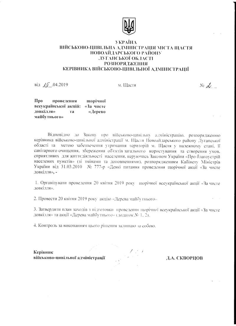 Розпорядження Щастинської міської ВА