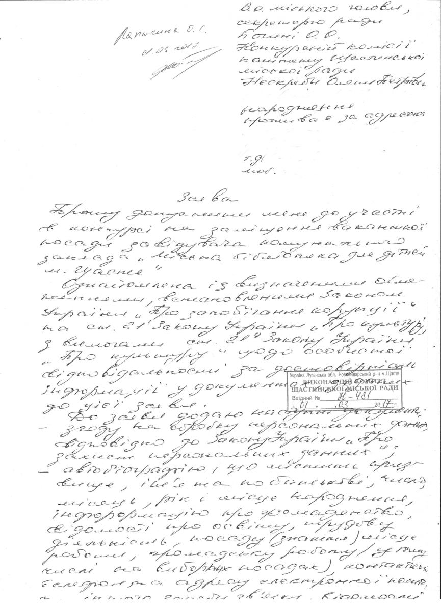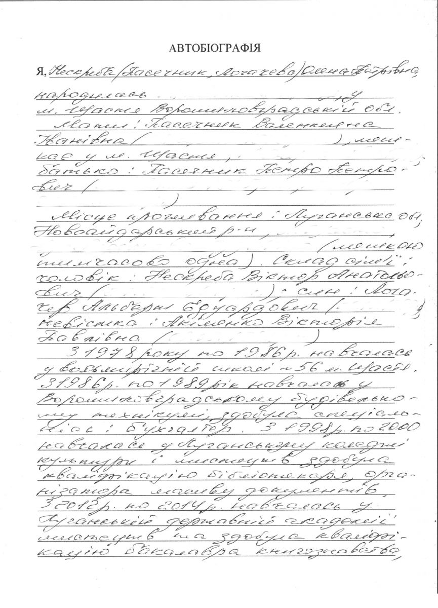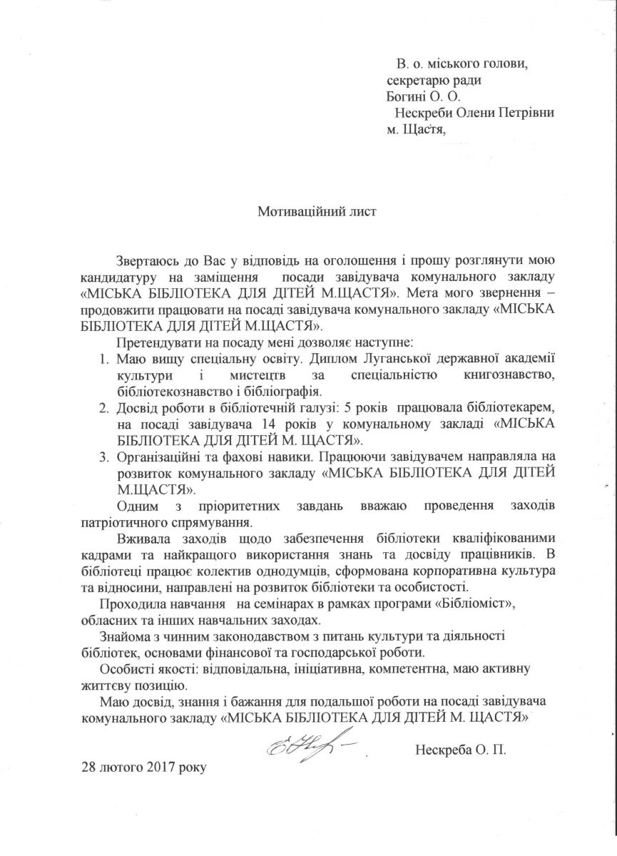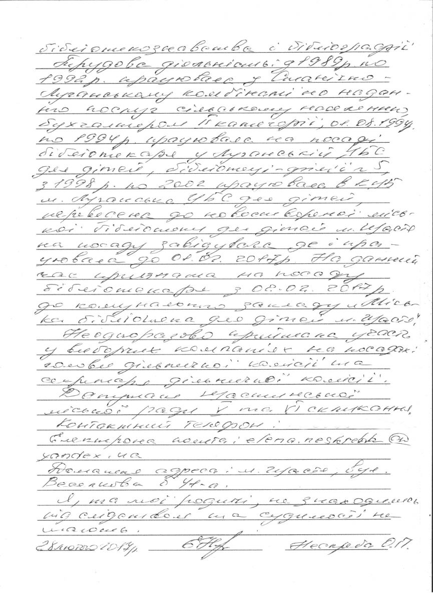 Нескреба О.П. - кандидат на посаду завідувача комунального закладу «Міська бібліотека для дітей»