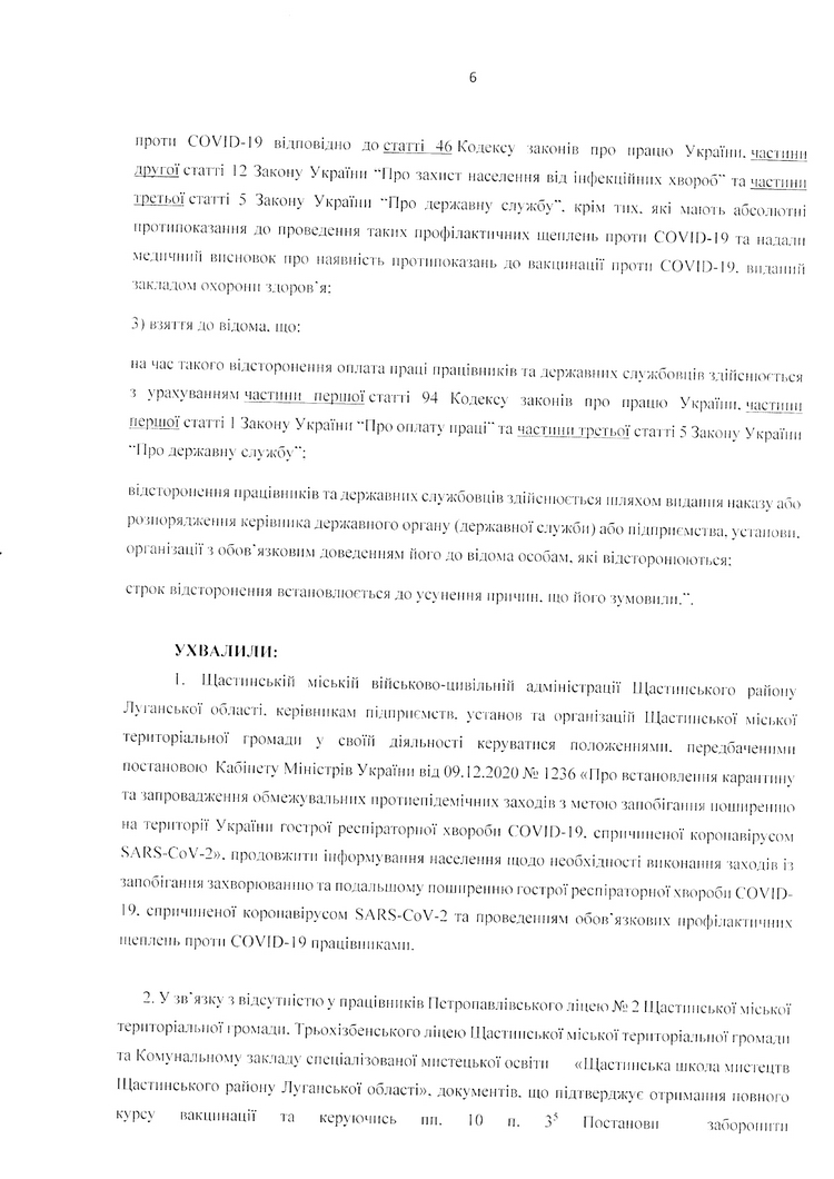 Розпорядження Щастинської міської ВА