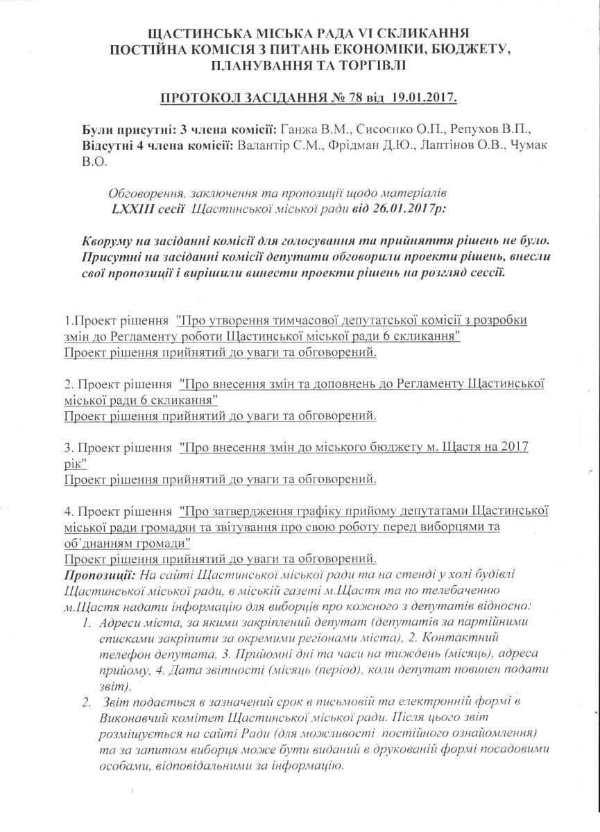 Home › Протокол засідання постійної комісії з питань економіки, бюджету, планування та торгівлі від 19.01.2017