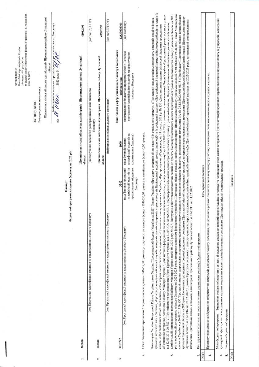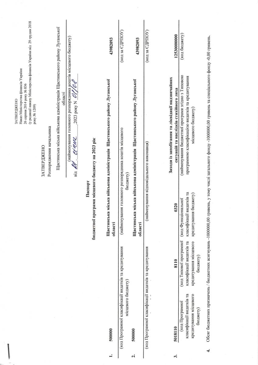 Розпорядження 01/08 від 24.01.23 Про затвердження паспортів бюджетних програм на 2023рік