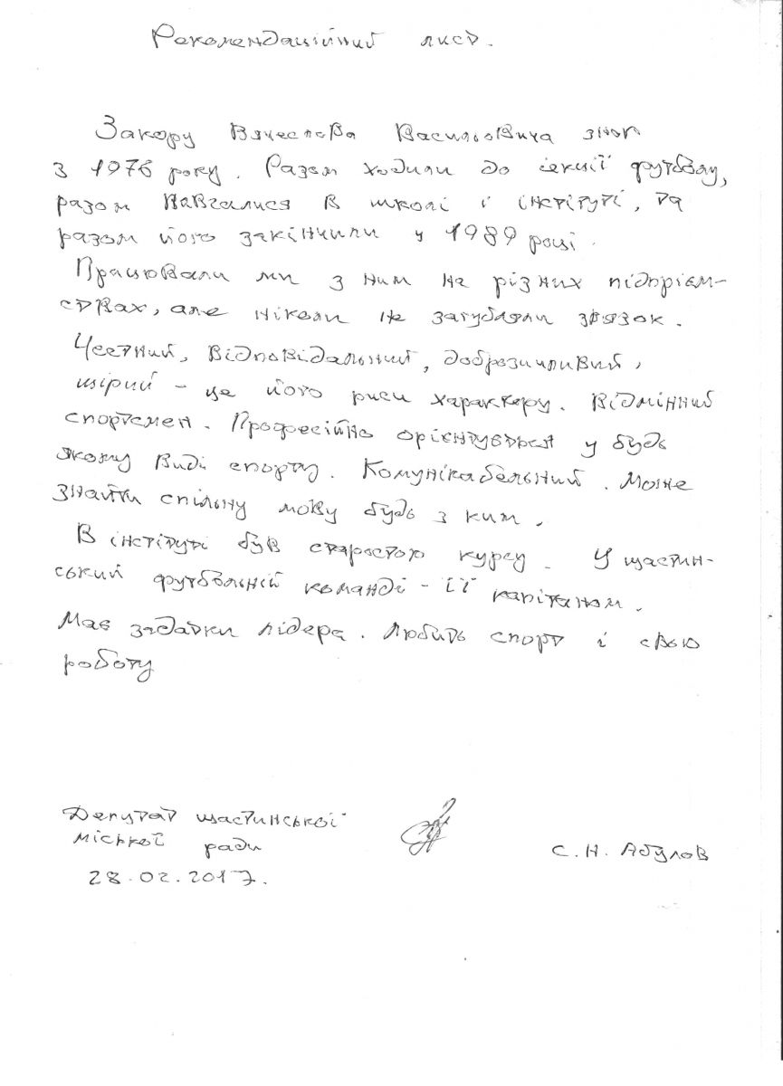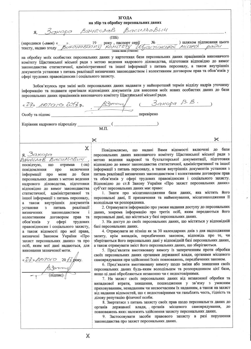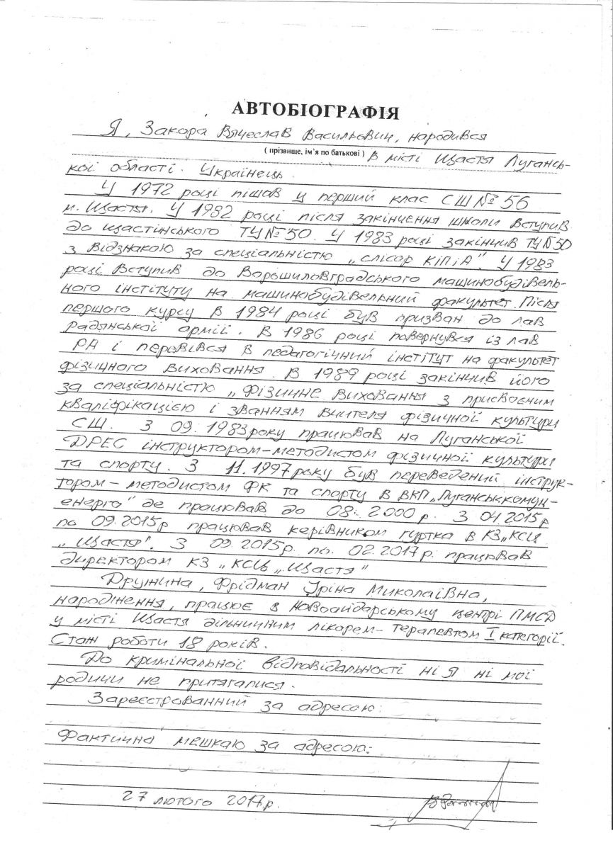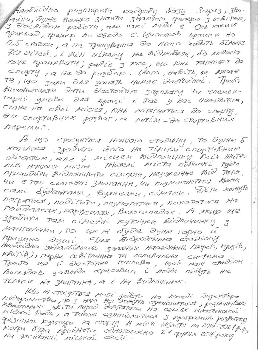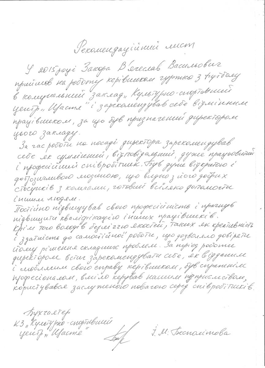 Закора В.В. - кандидат на посаду директора КЗ «Культурно-спортивний центр «Щастя»